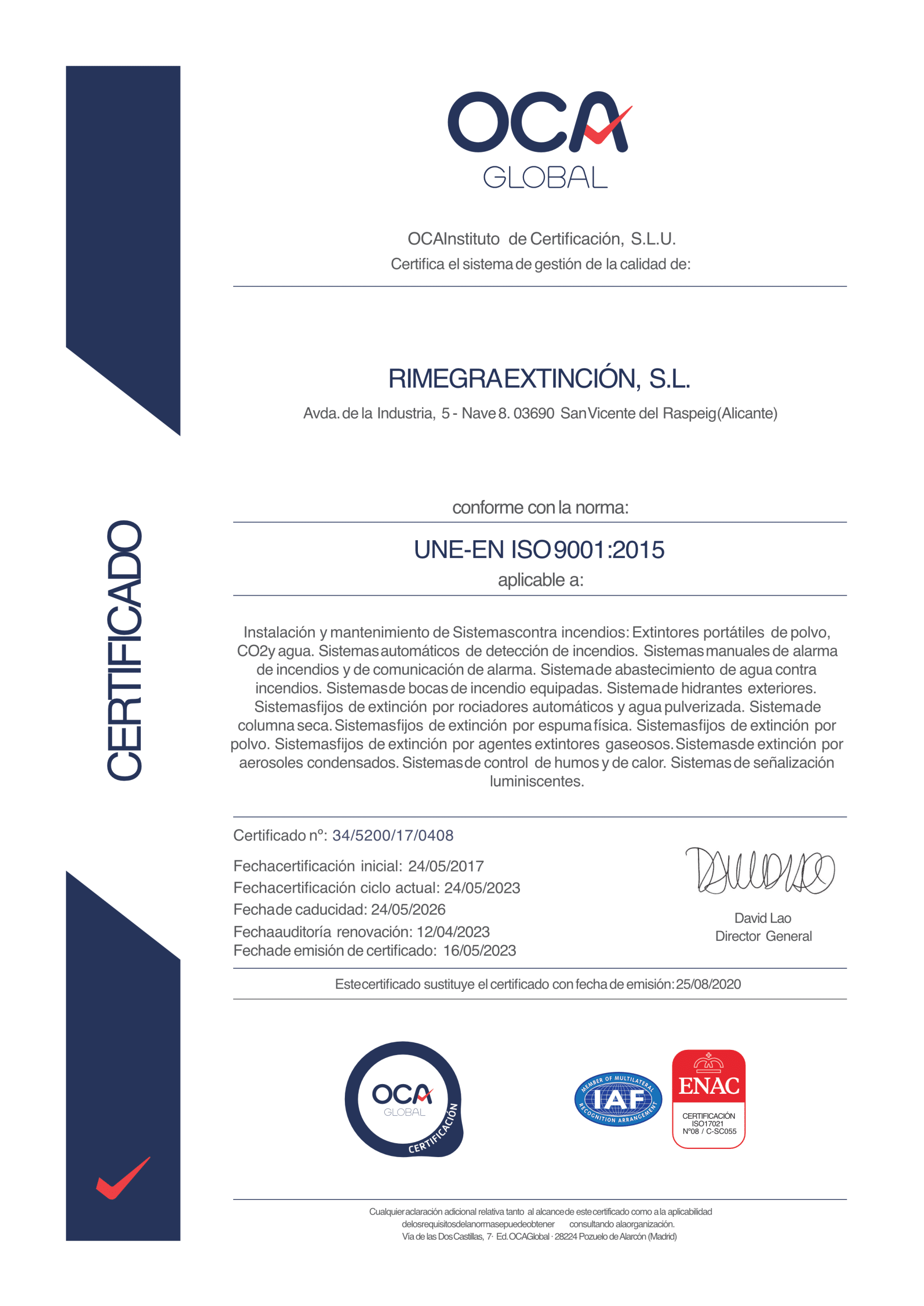 En Rimegra Extinción, somos una empresa con cobertura nacional especializada en la instalación y mantenimiento de sistemas contra incendios, fundada en 2011 en plena crisis económica como una apuesta por la diferenciación mediante un servicio de alta calidad.
